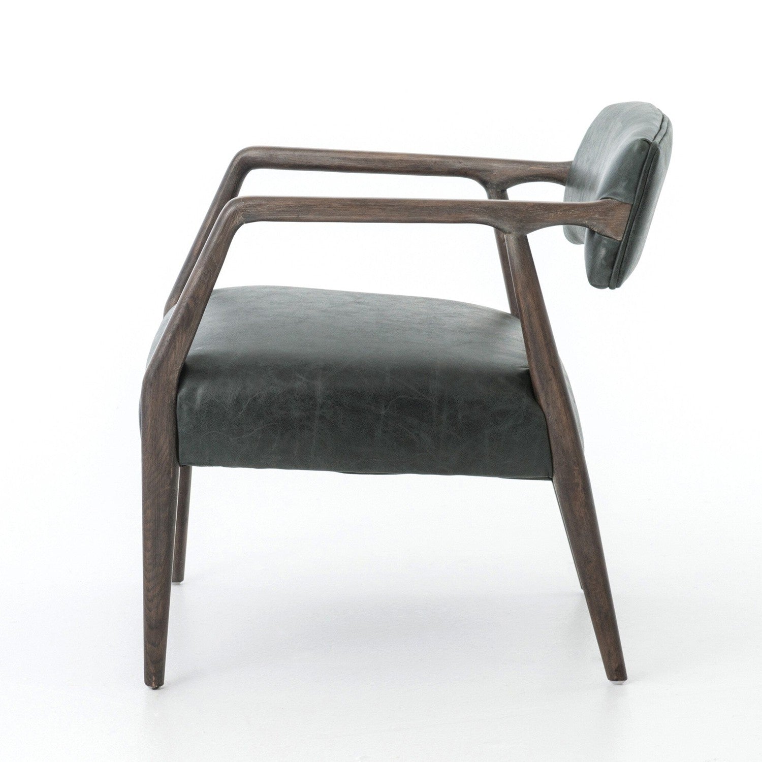 - Description: An angular, dark and smoky birch frame holds a deep seat and striking, low-slung back. Covered in black, top-grain leather.