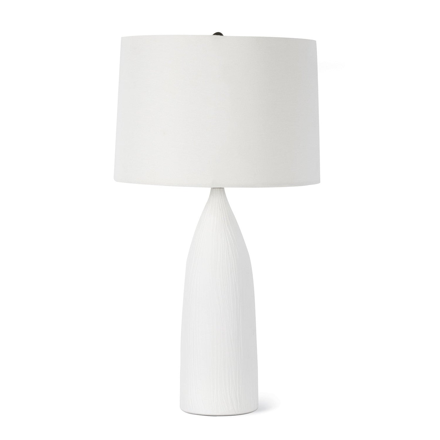 The hand carved line details of the Hayden provide a simple yet refined design. A clean silhouette made of matte white ceramic allows you to place this lamp in any space to enhance a relaxing atmosphere.