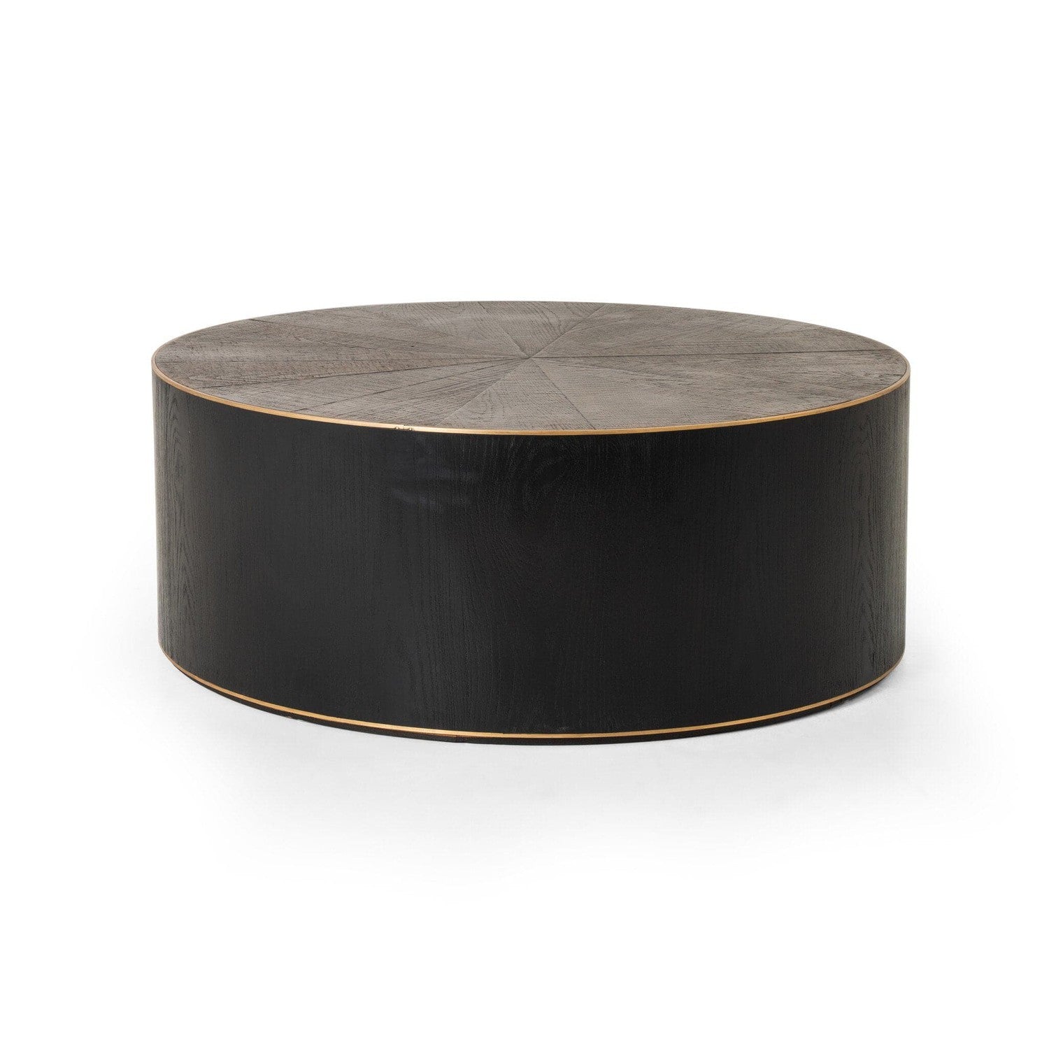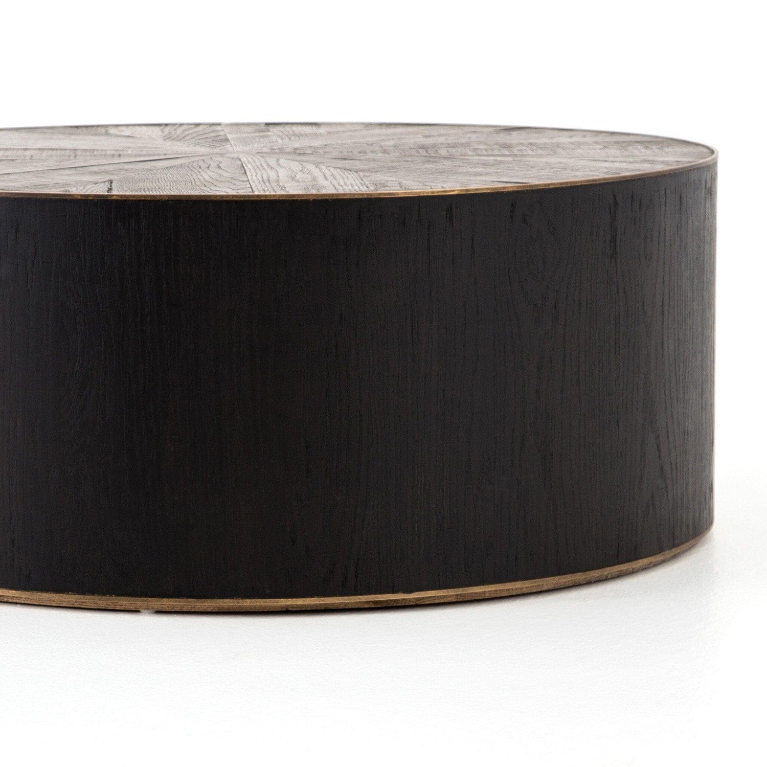 - Description: Bring on the drama. A deep brown oak top is cut in a starburst texture, framed by deep ebony sides, and encircled by bright brass rings.